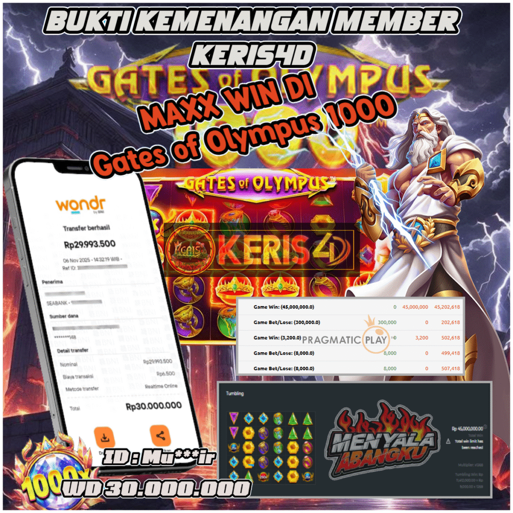 KERIS4D dikenal sebagai situs terpercaya yang selalu menghadirkan pengalaman bermain slot online yang aman, fair, dan berlisensi resmi. Di sini, kami tidak hanya sekadar memberikan janji, tapi bukti nyata berupa slip kemenangan yang dapat Anda lihat secara langsung.
