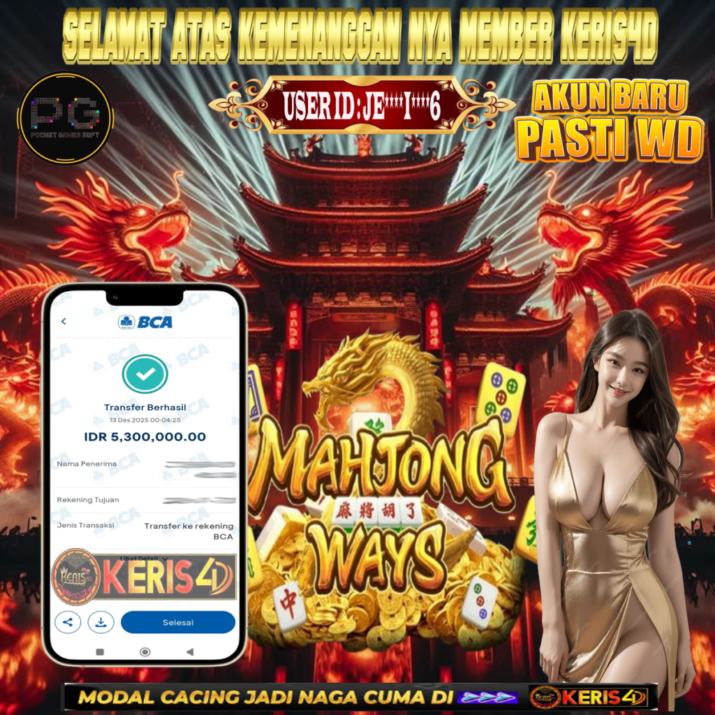 KERIS4D dikenal sebagai situs terpercaya yang selalu menghadirkan pengalaman bermain slot online yang aman, fair, dan berlisensi resmi. Di sini, kami tidak hanya sekadar memberikan janji, tapi bukti nyata berupa slip kemenangan yang dapat Anda lihat secara langsung.
