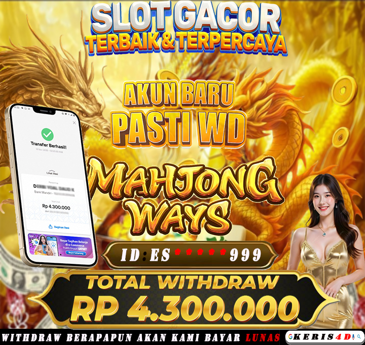KERIS4D dikenal sebagai situs terpercaya yang selalu menghadirkan pengalaman bermain slot online yang aman, fair, dan berlisensi resmi. Di sini, kami tidak hanya sekadar memberikan janji, tapi bukti nyata berupa slip kemenangan yang dapat Anda lihat secara langsung.