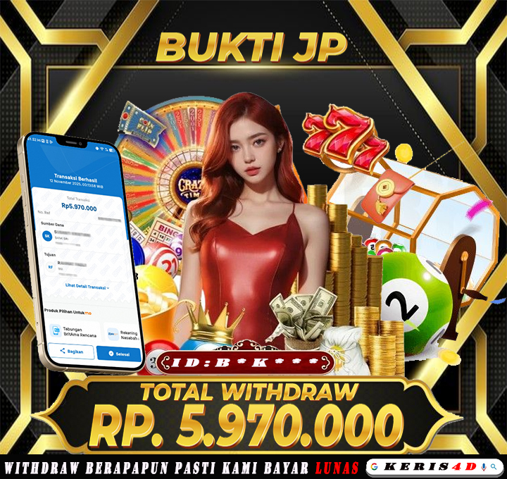 KERIS4D dikenal sebagai situs terpercaya yang selalu menghadirkan pengalaman bermain slot online yang aman, fair, dan berlisensi resmi. Di sini, kami tidak hanya sekadar memberikan janji, tapi bukti nyata berupa slip kemenangan yang dapat Anda lihat secara langsung.