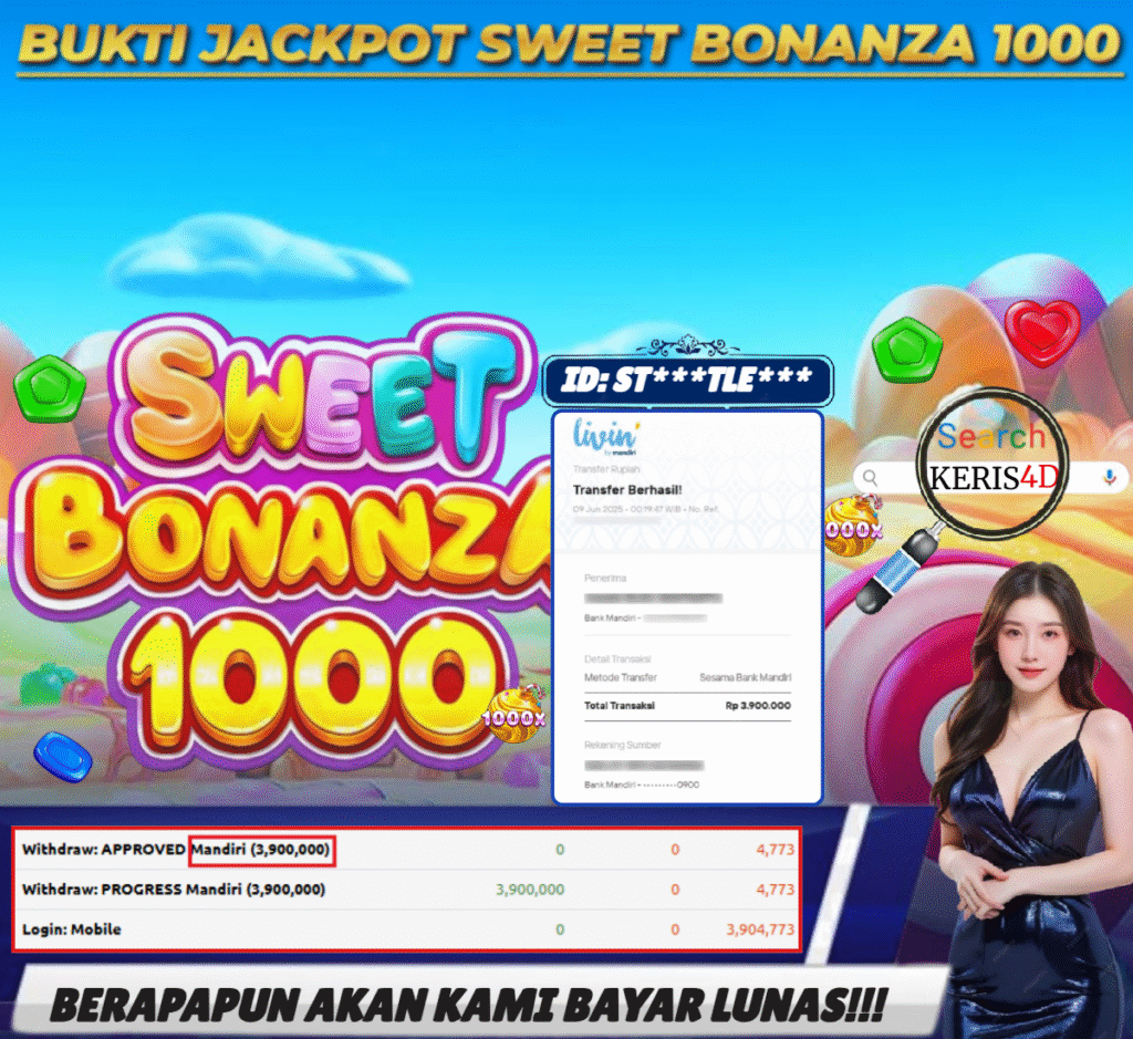 KERIS4D dikenal sebagai situs terpercaya yang selalu menghadirkan pengalaman bermain slot online yang aman, fair, dan berlisensi resmi. Di sini, kami tidak hanya sekadar memberikan janji, tapi bukti nyata berupa slip kemenangan yang dapat Anda lihat secara langsung.